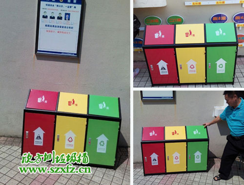 深圳市公安分局這款F98鋼板三分類垃圾桶的規(guī)格為:1220*430*890mm,鋼制垃圾桶呈屋形,三分類有三種顏色。從左到右順序依次排列,分別紅色,紅色,綠色三種顏色組成。屋形投遞口,絲印投遞人物標(biāo)志,輕輕一推即可,把垃圾廢物放進(jìn)去。正面絲印有三種標(biāo)志,有毒廢棄物,不可回收,可回收三類。鋼制垃圾桶一種存放垃圾的容器,使用冷軋鋼板或者鍍鋅鋼板制作而成。因?yàn)楫a(chǎn)品表面經(jīng)過噴塑和酸處理,防腐蝕性能更高。采用酸處理+噴塑處理,更利于防銹,增加使用壽命。這是鋼制垃圾桶所具有的強(qiáng)大的優(yōu)勢(shì)。