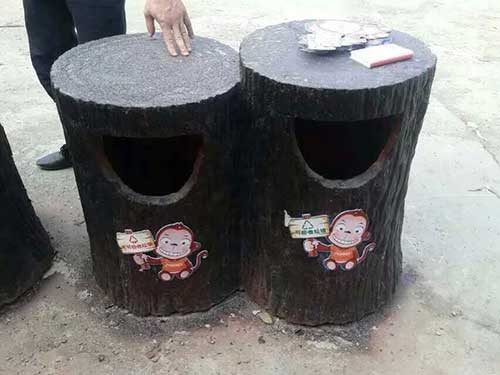 這批玻璃鋼環(huán)保垃圾桶各有特色,其中一款為樹洞造型,玻璃鋼環(huán)保垃圾桶桶身/內(nèi)膽/底座采用FRP玻璃鋼材料制造,具有防腐、防盜、防生銹、易清潔等特點,表面涂層采用高分子耐老化膠衣涂層,色澤明快、持久.樹樁造型,大投口更為方便的投放垃圾。漫步林蔭小道中見著這種造型的環(huán)保垃圾桶也不失為一種童趣。