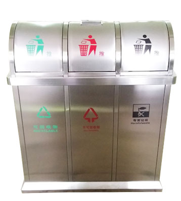 深圳新標(biāo)準(zhǔn)城中村街道社區(qū)不銹鋼五分類垃圾桶由有害垃圾、玻璃、金塑紙(為金屬、塑料、紙張的簡(jiǎn)稱)、廚余垃圾、其他垃圾這5分類不銹鋼垃圾桶組合而成。其中金塑紙、其他垃圾日常產(chǎn)生量較大,所以分類收集容器也