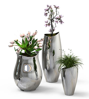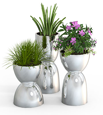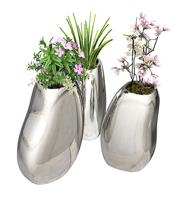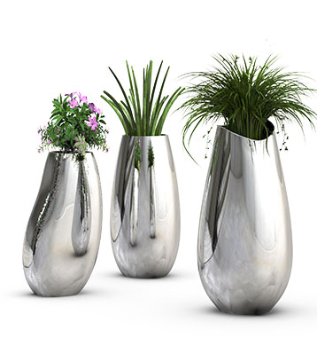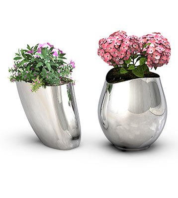 高低組合款不銹鋼曲面花缽
