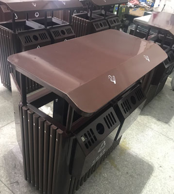 欣方圳景區(qū)戶外鋼木分類垃圾桶批量生產(chǎn)圖