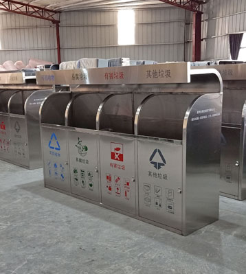 小區(qū)垃圾分類站點四類垃圾分類垃圾桶,不銹鋼無疑是較為理想的材質(zhì)。它戶外防銹蝕效果好,表面金屬光澤高檔美觀,污漬也易清理。不銹鋼分類桶產(chǎn)...