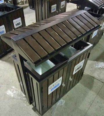 欣方圳屋形鋼木分類垃圾桶桶身細節(jié)圖