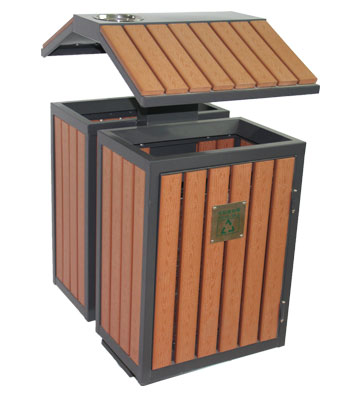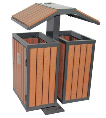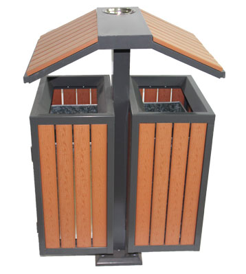 屋形環(huán)保鋼木分類垃圾箱桶頭圖