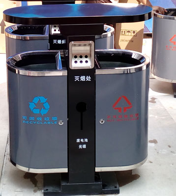 戶外鋼板分類垃圾桶批量生產(chǎn)圖